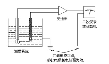2、二線制變送器,接入計算機,調(diào)節(jié)記錄儀,打印機等二次儀表時,必須配隔離型配電器或配本公司生產(chǎn)的帶隔離輸出的XMT或XMZ-1000系列顯示儀表,所需4-20mA信號從其輸出端子取得,以隔斷測量系統(tǒng)與輸出到二次儀表的共地干擾。(PH變送器,電極系統(tǒng)與大地連通,要正常工作,外部連線必須懸空與地,并且絕緣良好,而計算機或調(diào)節(jié)記錄儀表,大都是電源接地,直接與變送器連接后,使變送器的回路接地而形成測量回路的兩點接地,結(jié)果造成參比電極被電解而失效。)
